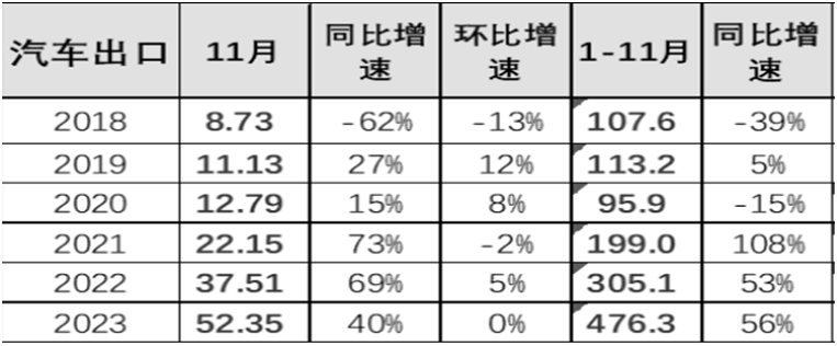 中國(guó)于2009年超越美國(guó)成為全球最大的汽車(chē)生產(chǎn)國(guó)和消費(fèi)國(guó)。據(jù)中國(guó)汽車(chē)工業(yè)協(xié)會(huì)公布報(bào)告顯示,2023年1-11月中國(guó)汽車(chē)實(shí)現(xiàn)出口476.3萬(wàn)臺(tái),出 口增速56%的持續(xù)強(qiáng)增長(zhǎng)。中國(guó)已成為新能源汽車(chē)最大的生產(chǎn)國(guó)和出口國(guó),約占世界的一半。在這個(gè)意義上,中國(guó)汽車(chē)產(chǎn)業(yè)已經(jīng)換道超車(chē),從“跟隨者”變成“領(lǐng)跑者”,正引領(lǐng)著這場(chǎng)波瀾壯闊的全球汽車(chē)革命,這也是中國(guó)從汽車(chē)大國(guó)邁向汽車(chē)強(qiáng)國(guó)的重要里程碑。