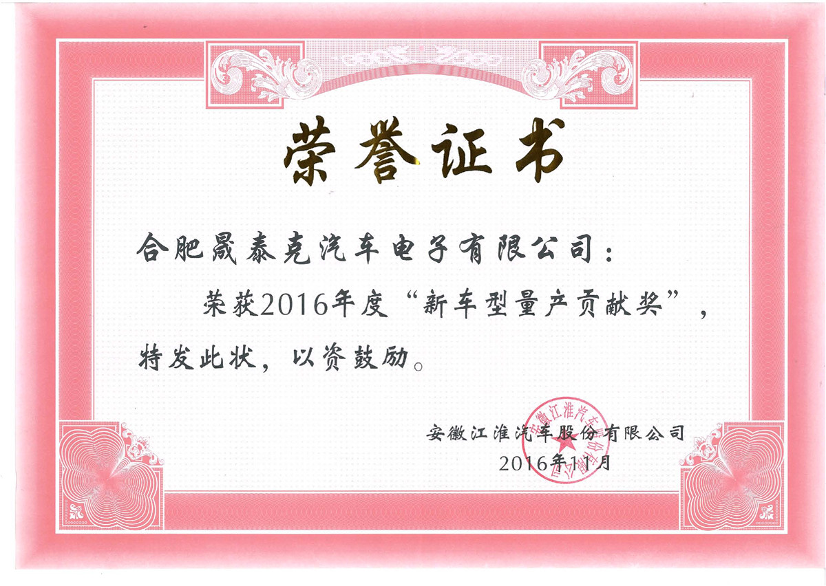 2016年 新車型量產(chǎn)貢獻(xiàn)獎